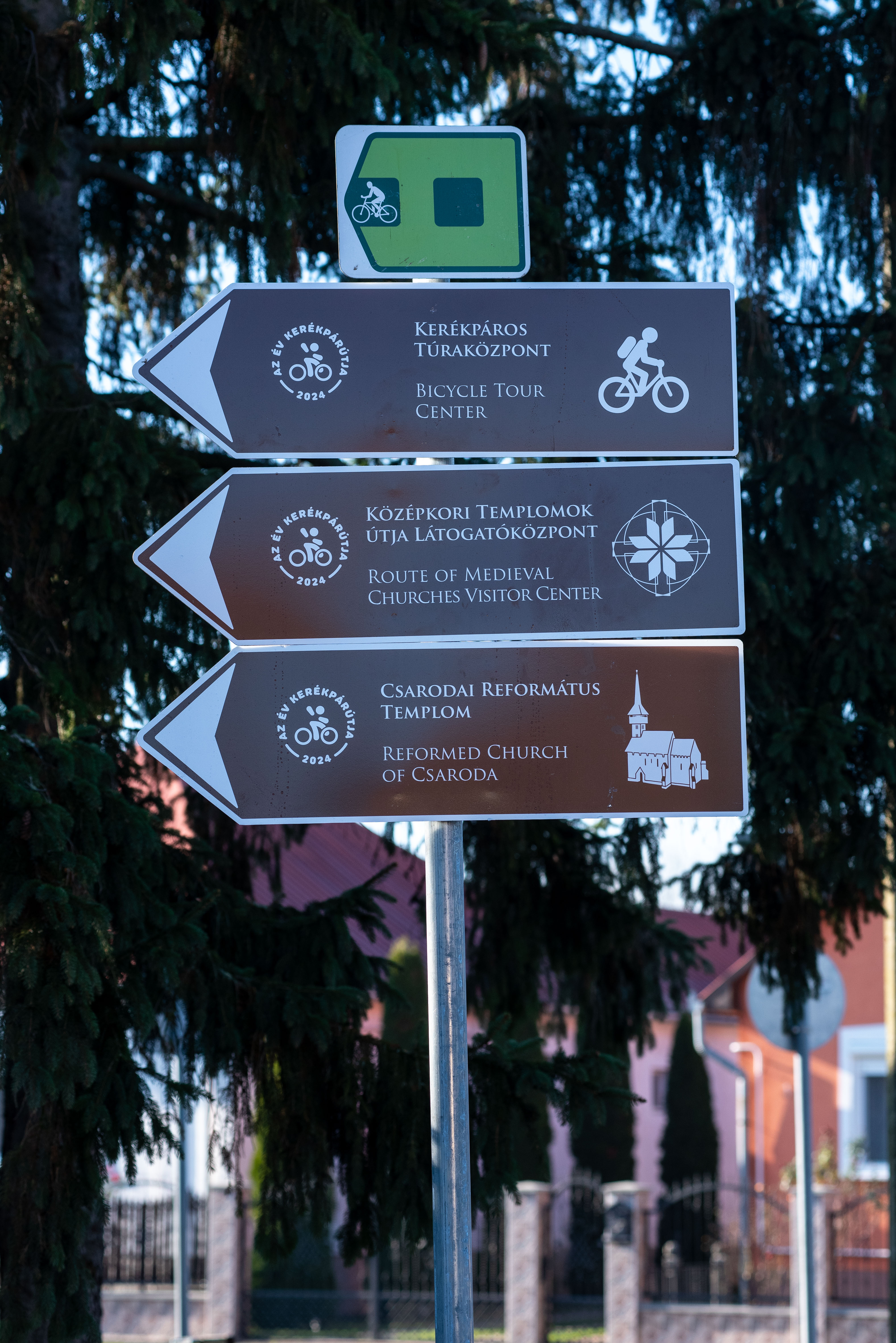 A megnövekedett kerékpárosok száma és igénye hívta életre azt a kezdeményezést, amely a Középkori Templomok Útja Egyesület, Vásárosnamény Város Önkormányzata és a Felső-Tisza-vidéki Vízügyi Igazgatóság együttműködésében valósult meg. Országos szinten új típusú, a tájékozódást segítő, 40 db turisztikai célú útirányjelző tábla kihelyezésére került sor a Beregi kör mentén. A táblák célja, hogy magyar és angol nyelven jelezze azokat a konkrét látványosságokat, amelyet érdemes a túrázóknak megtekintenie, mint például a Beregi Múzeum Vásárosnaményban, a mezítlábas Notre Dame és a Beregi Keresztszemes tájház Tákoson, a mosolygó szentek temploma és a Középkori templomok útja látogatóközpont Csarodán, Márokpapi középkori temploma, a Nagyhegy, a szárazmalom és a református templom Tarpán, illetve a kerékpáros körtúra szabadstrandjai Tivadarban, Jándon és Vásárosnaményban. Mivel egy egyedi táblatípus elhelyezése volt az elképzelés, így a Magyar Közút Útügyi Műszaki Szabályozási Bizottság hozzájárulására volt szükség. Példaértékű volt az az állami, önkormányzati és civil szereplők közötti együttműködés, melynek keretében megtörtént a táblák kihelyezése. A Középkori Templomok Útja Egyesület kezdeményezte a javaslatot, készítette el a táblák grafikai terveit, illetve lefolytatta az engedélyezési eljárásokat, Vásárosnamény Város Önkormányzata finanszírozta a táblák gyártását, a Felső-Tisza-vidéki Vízügyi Igazgatóság pedig vállalta kihelyezésüket.